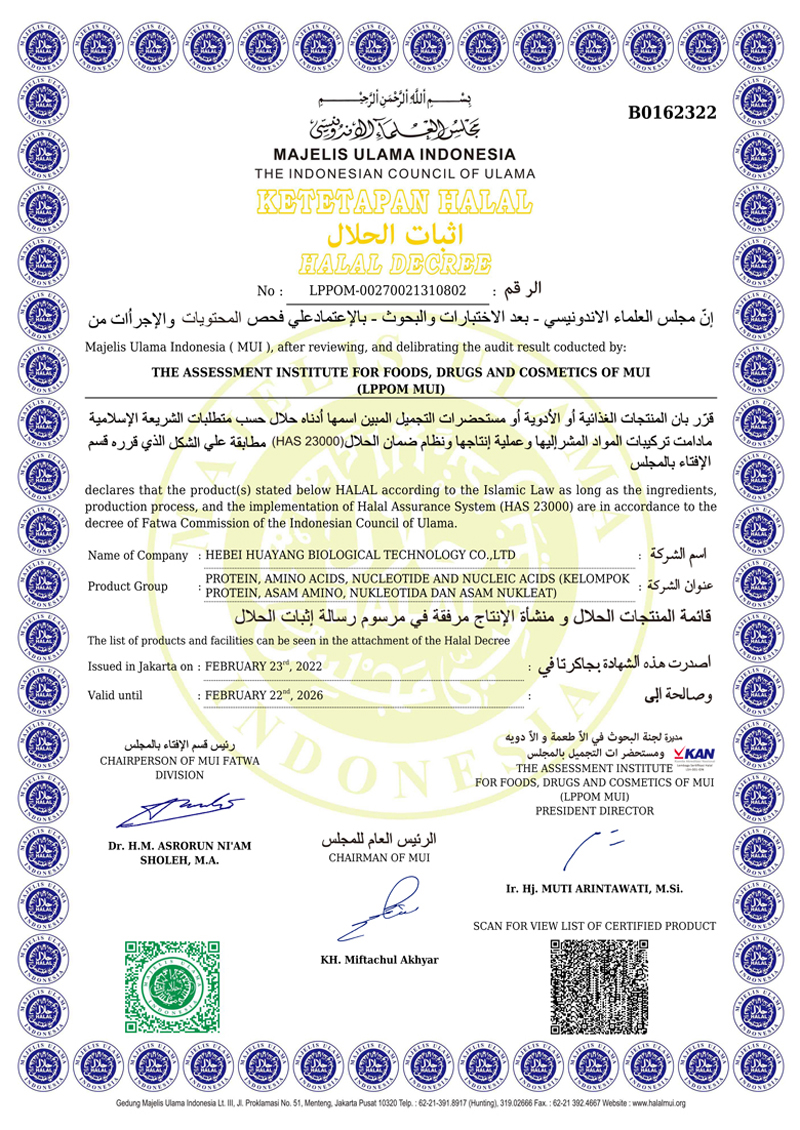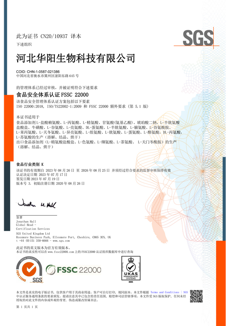 河北華陽集團(tuán)坐落于河北省衡水市冀州區(qū)省級(jí)工業(yè)園區(qū)(始建于1987年,前身為冀州市華陽化工有限責(zé)任公司)。集團(tuán)下屬四個(gè)公司:河北華陽生物科技有限公司、河北華悅氨基酸科技有限公司、滄州華晨生物科技有限公司、衡水市陽力商貿(mào)有限公司。主要生產(chǎn)甘氨酸、L-丙氨酸、L-蘇氨酸、DL-蛋氨酸、L-賴氨酸鹽酸鹽、L-半胱氨酸鹽酸鹽、干貝素等氨基酸系列食品級(jí)產(chǎn)品,廣泛應(yīng)用于食品、飲料、飼料等行業(yè)。......